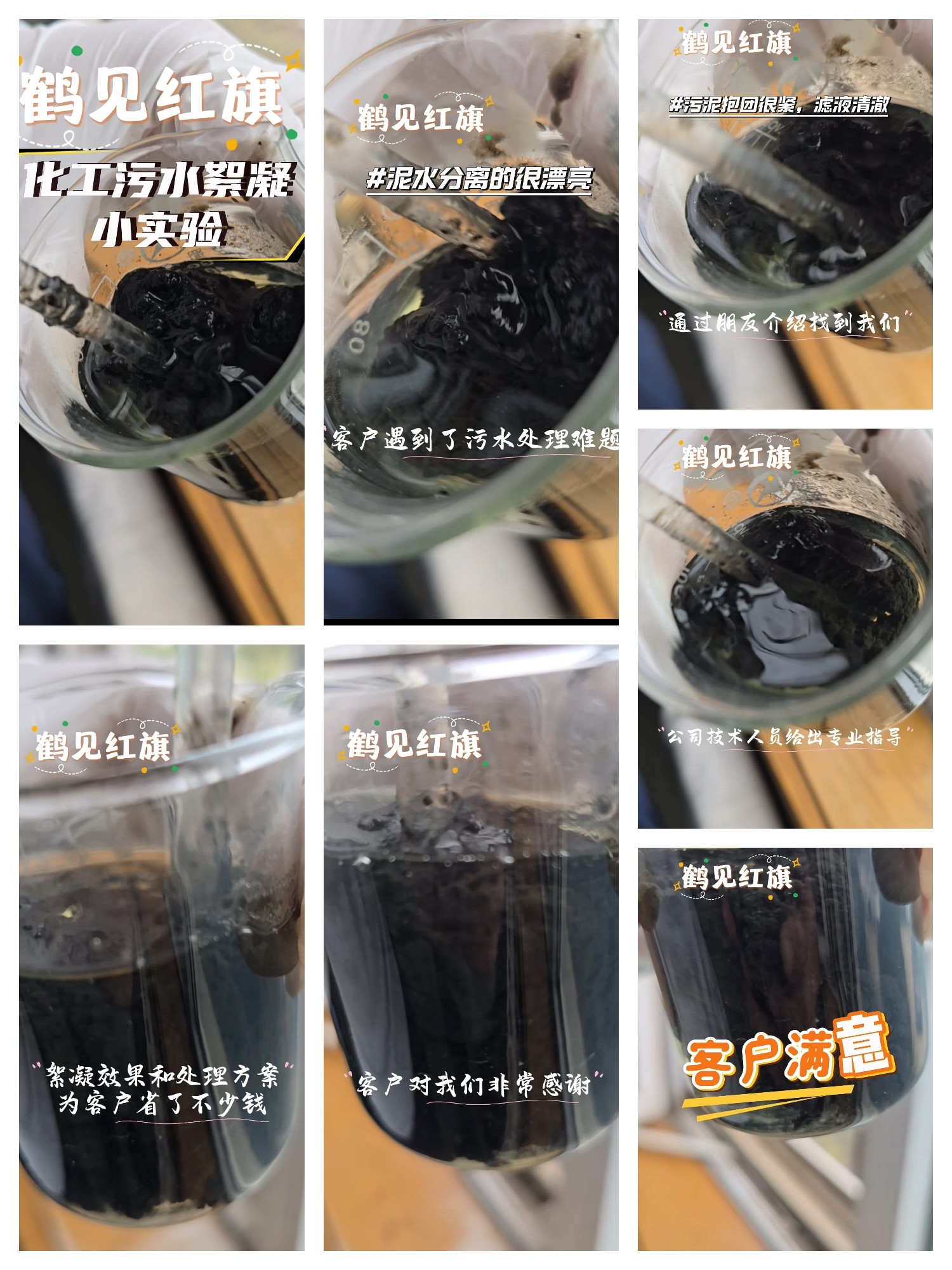 鹤见红旗针对化工污水处理难题开展絮凝小实验,展现出卓越的泥水分离效果—— 污泥抱团保絮性佳,滤液清澈透亮。当客户因污水处理困境寻求帮助时,鹤见红旗技术团队迅速介入,凭借专业技术指导提供定制化絮凝方案与处理策略。最终,不仅实现了优异的絮凝效果,更帮助客户有效降低处理成本,以专业实力赢得客户的诚挚感谢与高度满意。未来,鹤见红旗将持续以技术为核心,为更多企业破解污水处理痛点,助力行业绿色发展。