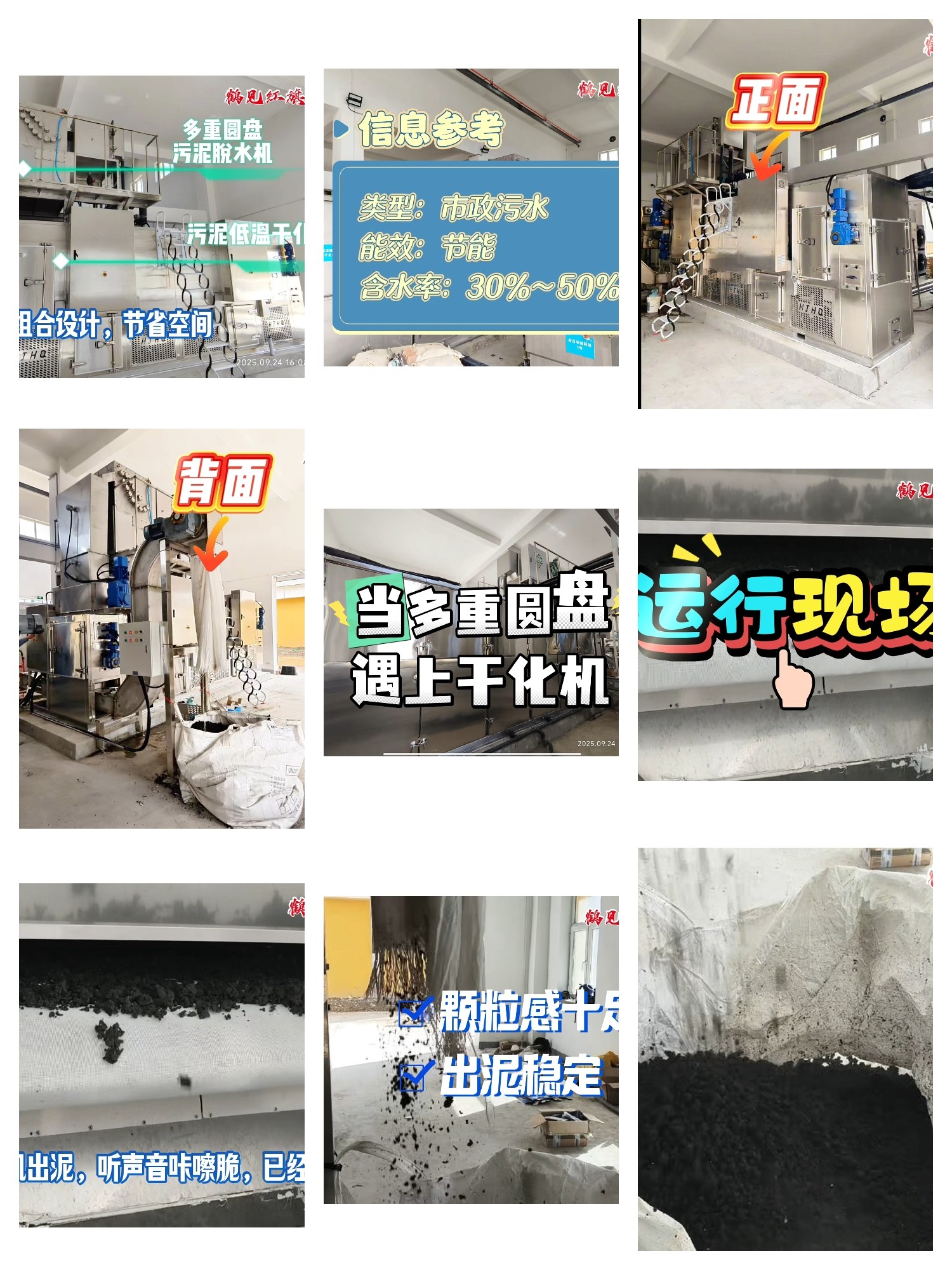 多重圆盘污泥脱水机与污泥低温干化机组合现场-山东鹤见红旗—污泥脱水与干化技术高端装备引领者